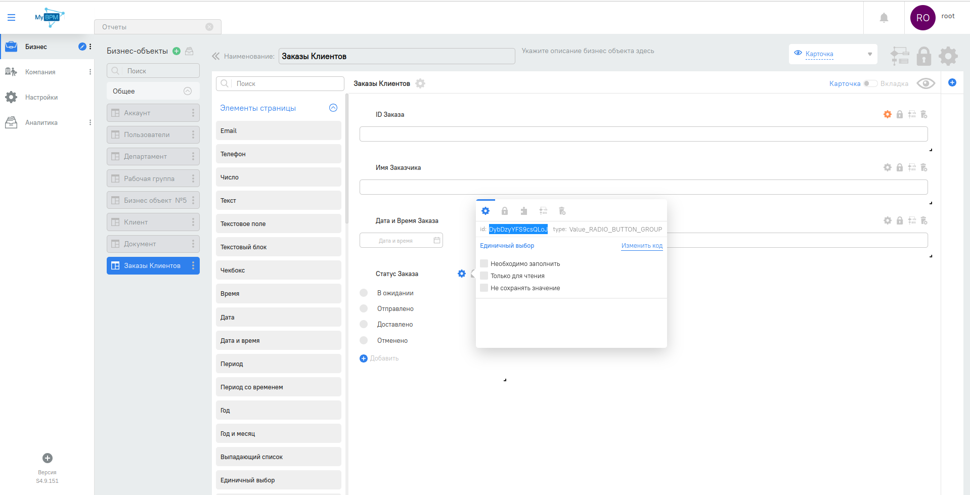- Кликаем на значок настройки (Иконка шестеренки) у полей или у БО (Расположен справа сверху под вашим аккаунтом)
