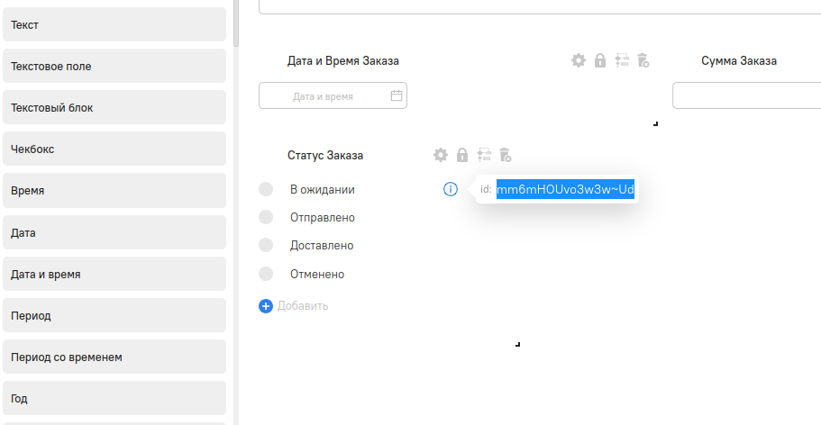 Хранимое значение: Массив идентификаторов инстанций бизнес-объекта - ["Идентификатор инстанции БО"]