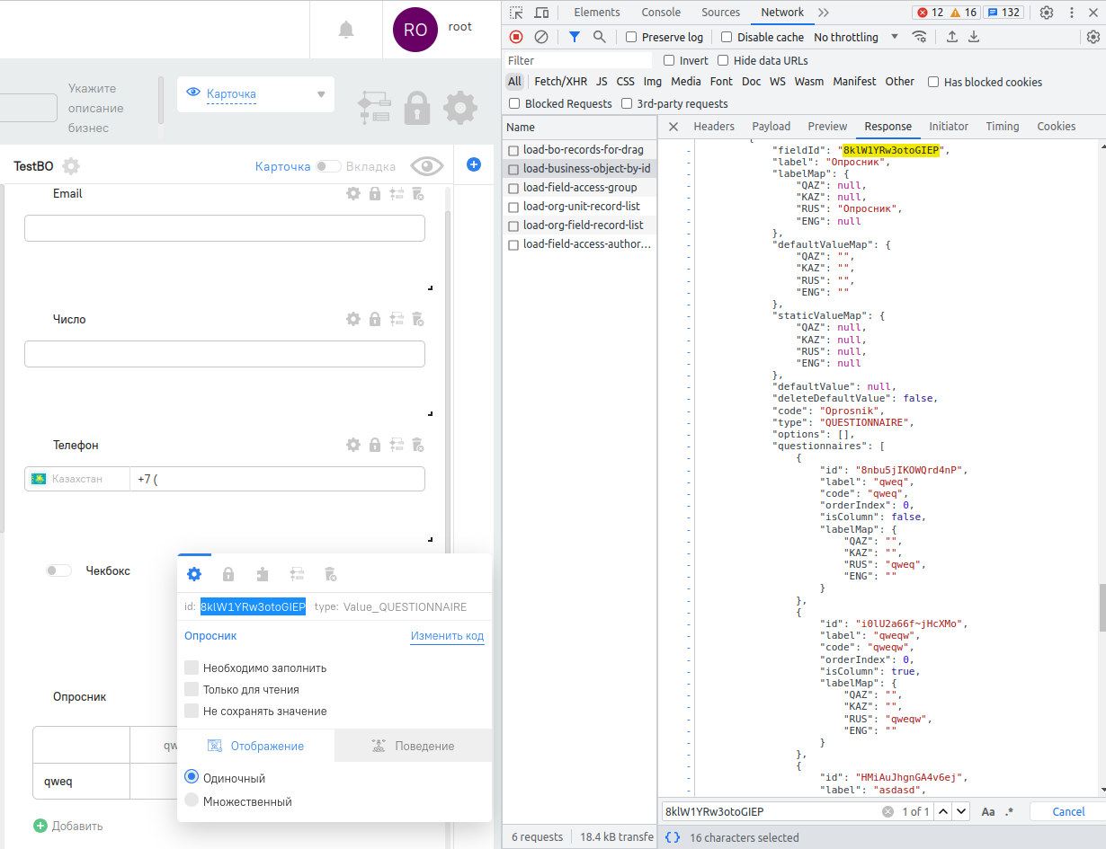 - После этого найдите в данном JSON-е: поле Опросник
