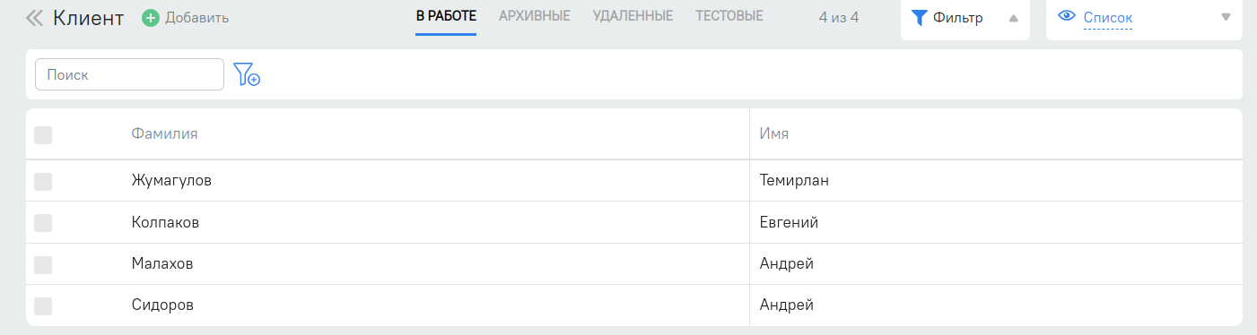 Пример 1: Поиск клиента по фамилии И имени "Сидоров Андрей"