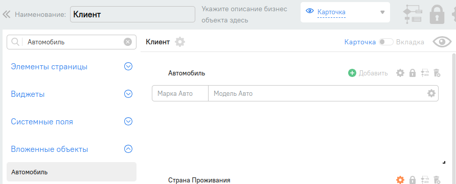 Зайдем в наше БО Клиент и добавим ранее созданный БО Автомобиль