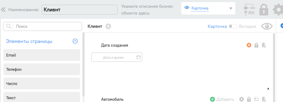 Добавим системное поле "Дата Создания" в наше БО Клиент, чтобы отображать его для просмотра: